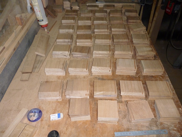 幼稚園の卒園記念品のペン立て35個の製作しました。無垢のクルミ材を使っての製作です。個数分すべて切り出します。