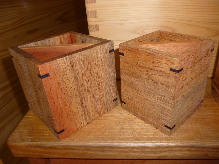マホガニーのペン立て 投稿日時: 2012年10月30日 投稿者: totoran オーダーしていただいたペン立て作りました。オーダー品はクルミ(右)だったんですが、一緒にマホガニー(左)でも作ってみました。なんかアジアンチックというかアフリカンというか、ワイルドな風合いになってしまいました。こういうのもありかな。