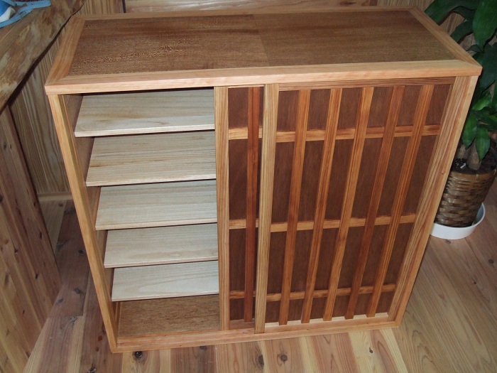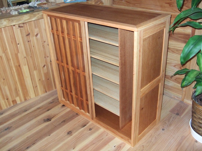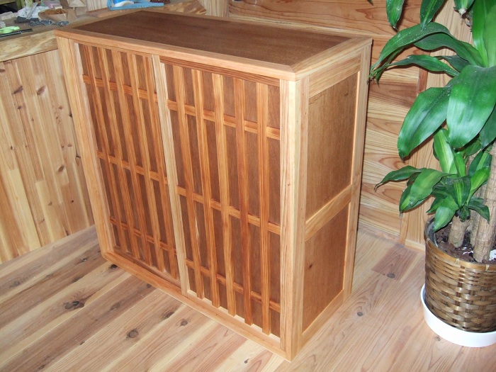 長持のリメイク 投稿日時: 2012年6月26日 投稿者: totoran 長持と格子建具のリメイクが出来ました。使える部分は全部使いました。 作り変えると・・・ 使えるだけ使って、足りない部分は当店の材料で下駄箱に作り変えてほしいという依頼でした。本体は桐と桧、棚板は桐、引き戸は杉です。桐・杉・桧の三種類の木を使った下駄箱なんて世界に何台あるんだろう。昔ながらの奈良の町家なので、この下駄箱もいい感じに収まると思います。